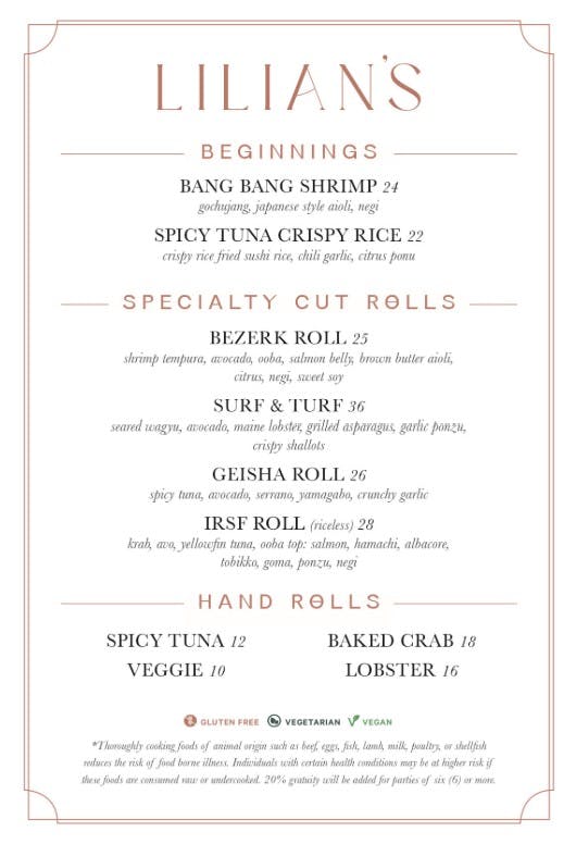Now Serving Sushi at Lilian’s Rancho Santa Fe: Rolls, Hand Rolls & Specialty Bites